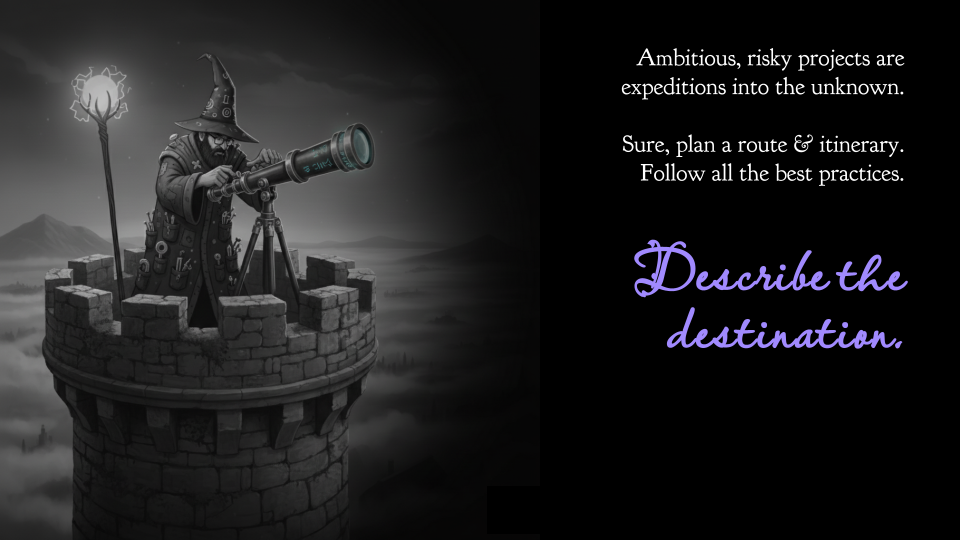 Yeah, we planned the how and the when. The route and the itinerary. We read Will Larson’s books. We followed all the best practices. But we didn’t spend enough time describing the destination. We didn’t specify our new system carefully enough and early enough, so we spent a lot of time thrashing and — oops! — built robots that turned out to be murder hobos.